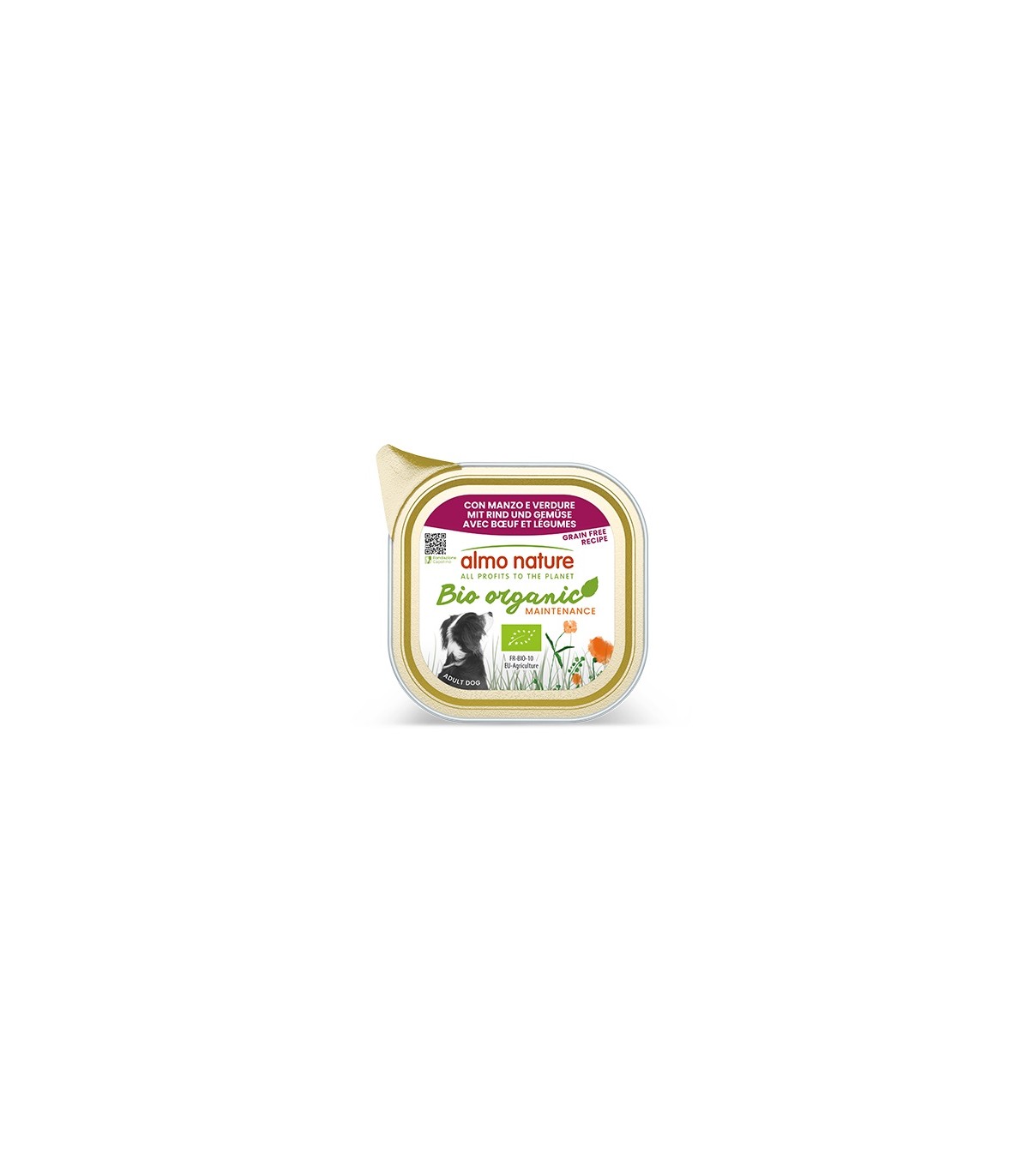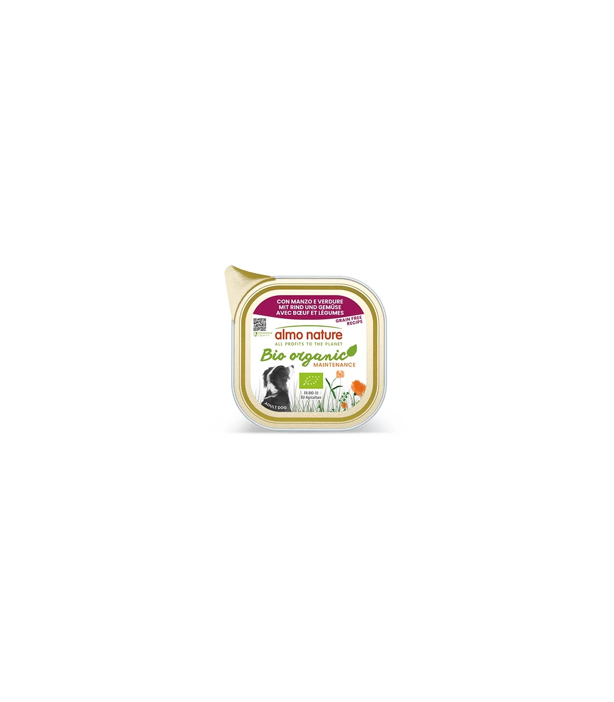 La gamma Bio Organic Maintenance è preparata con ingredienti prodotti seguendo la filiera del BIO e le direttive comunitarie in materia. Alimenti umidi completi enutrizionalmente bilanciati che soddisfano i gusti di tantissimi cani adulti grazie alla varietà di ingredienti (carne, pesce, rigaglie e verdure). Senza coloranti artificiali néconservanti chimici. La confezione in alluminio è riciclabile e, se smaltita correttamente, può essere riutilizzata come materia prima per altri imballi. Bio Organic Maintenance ricette in patè - disponibile in vaschette da 100 g e 300 g. Almo Nature è il brand attivista 100% proprietà della Fondazione Capellino.