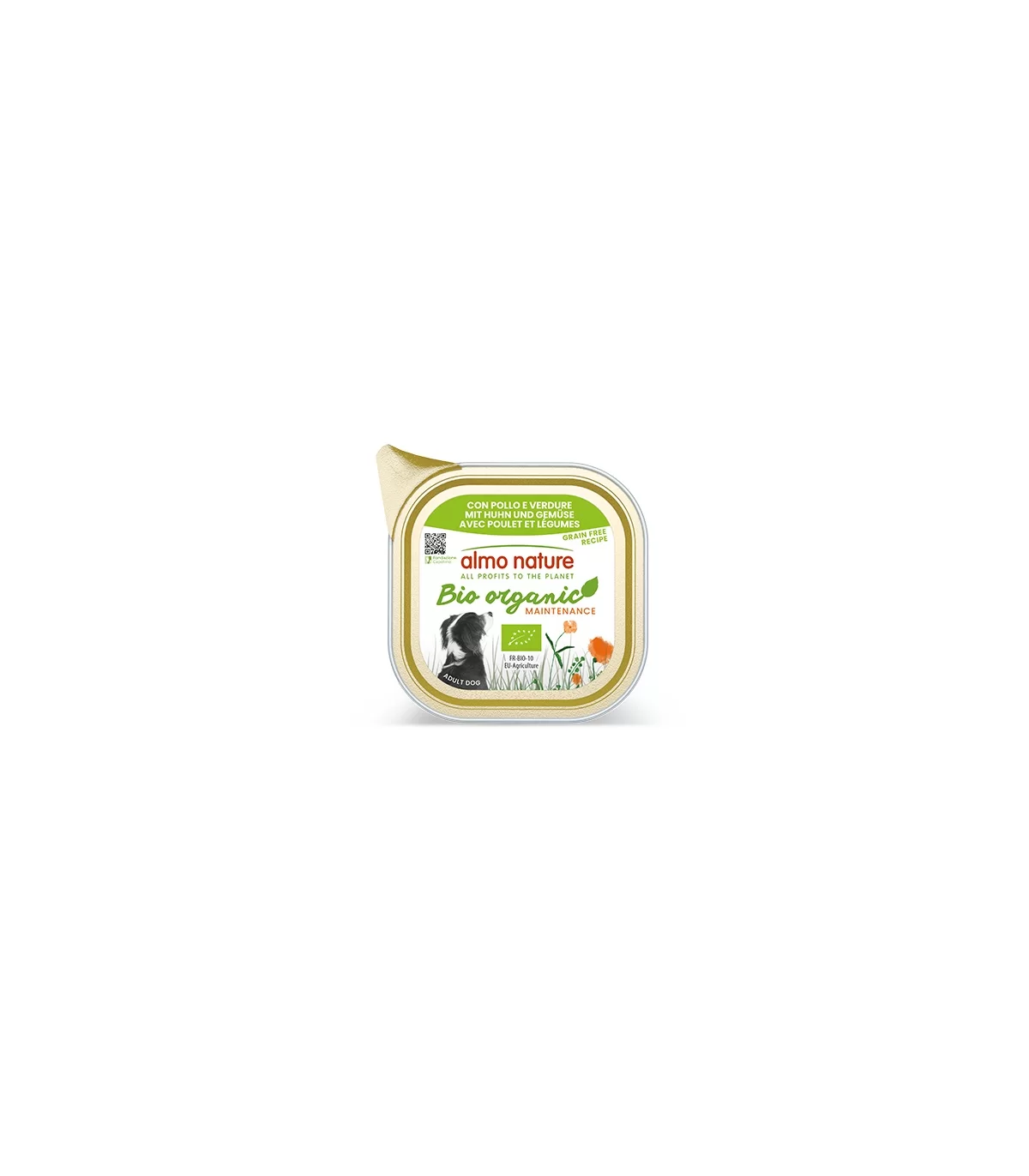 La gamma Bio Organic Maintenance è preparata con ingredienti prodotti seguendo la filiera del BIO e le direttive comunitarie in materia. Alimenti umidi completi enutrizionalmente bilanciati che soddisfano i gusti di tantissimi cani adulti grazie alla varietà di ingredienti (carne, pesce, rigaglie e verdure). Senza coloranti artificiali néconservanti chimici. La confezione in alluminio è riciclabile e, se smaltita correttamente, può essere riutilizzata come materia prima per altri imballi. Bio Organic Maintenance ricette in patè - disponibile in vaschette da 100 g e 300 g. Almo Nature è il brand attivista 100% proprietà della Fondazione Capellino.