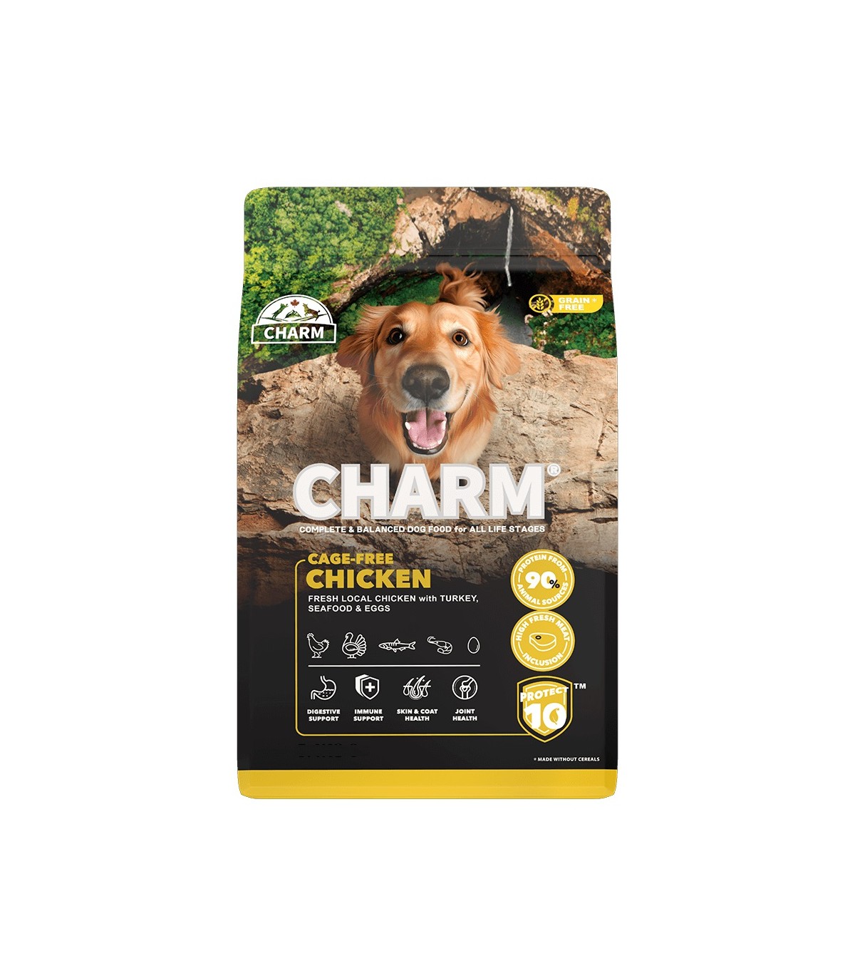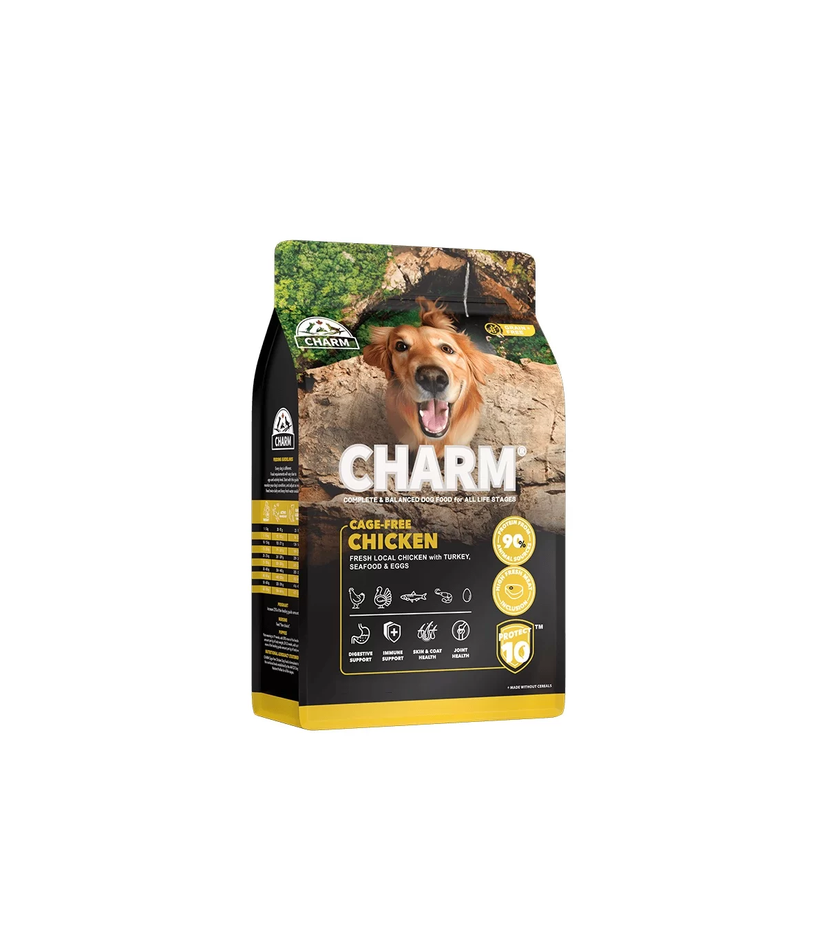 Il cibo per cani CHARM con Pollo allevato senza gabbia è formulato per soddisfare i livelli nutrizionali stabiliti dai profili nutrizionali degli alimenti per cani AAFCO per tutte le fasi della vita.