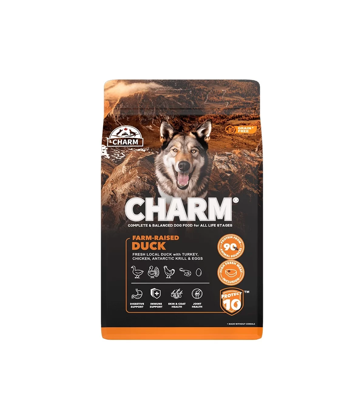 Il cibo per cani CHARM con Anatra allevata in fattoria è formulato per soddisfare i livelli nutrizionali stabiliti dai profili nutrizionali degli alimenti per cani AAFCO per tutte le fasi della vita.