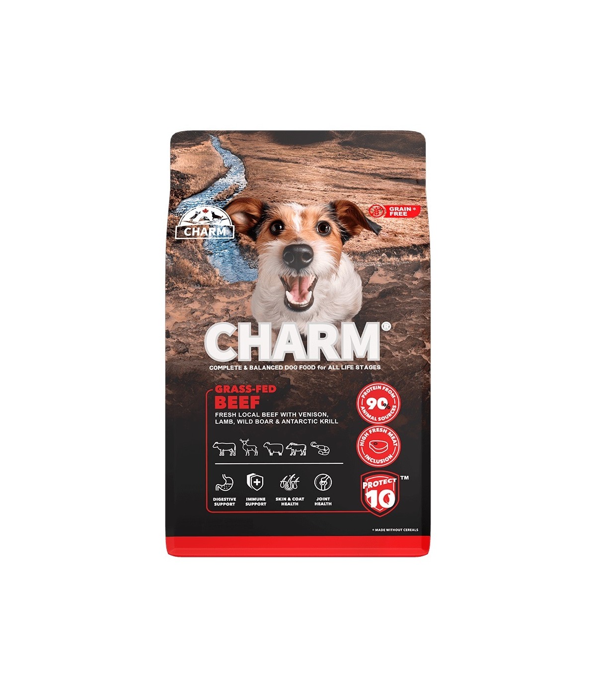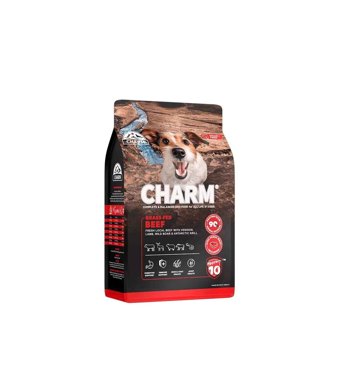 Il cibo per cani CHARM con Manzo allevato ad erba è formulato per soddisfare i livelli nutrizionali stabiliti dai profili nutrizionali degli alimenti per cani AAFCO per tutte le fasi della vita.