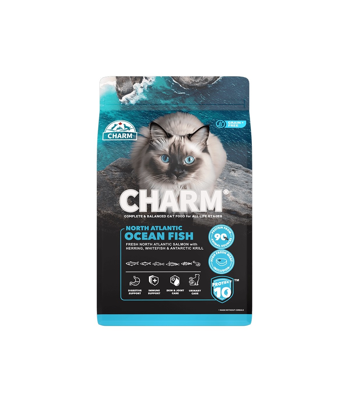 Il cibo per gatti CHARM con Pesce dell’ Oceano Atlantico del Nord è formulato per soddisfare i livelli nutrizionali stabiliti dai profili nutrizionali degli alimenti per gatti AAFCO per tutte le fasi della vita.