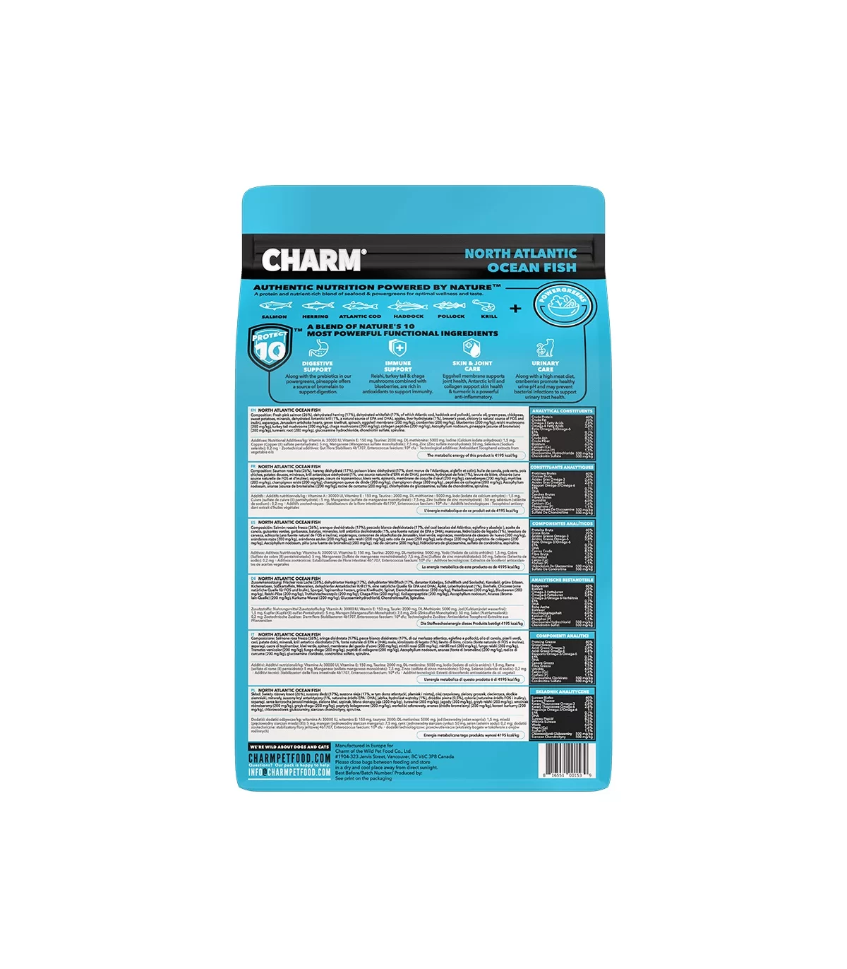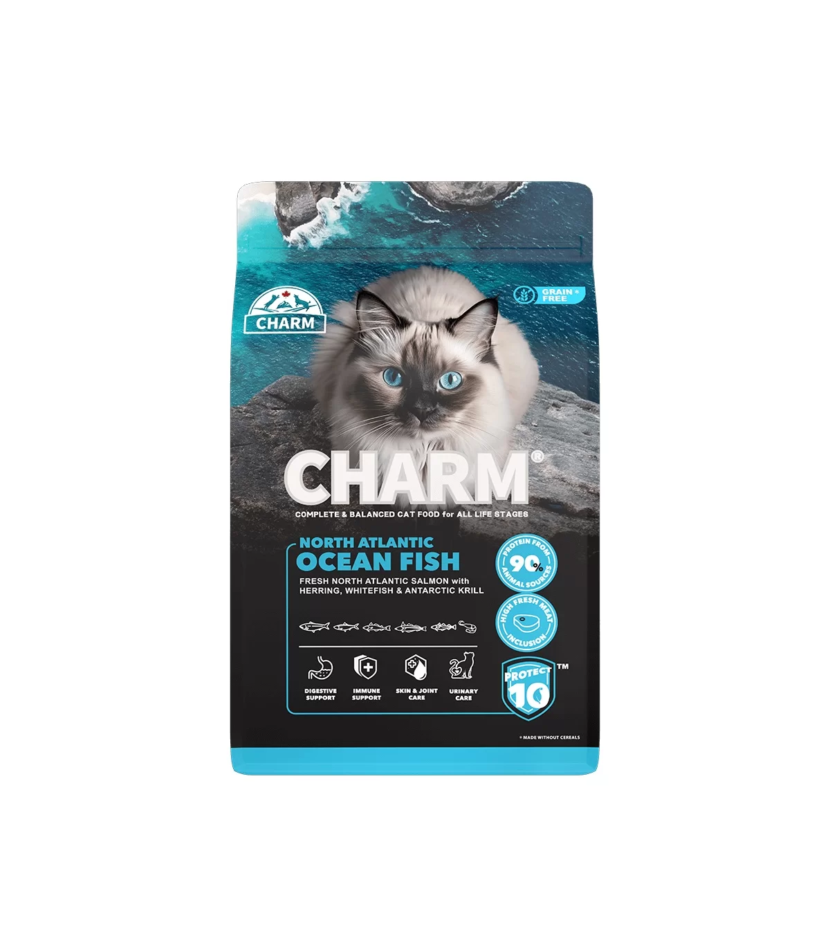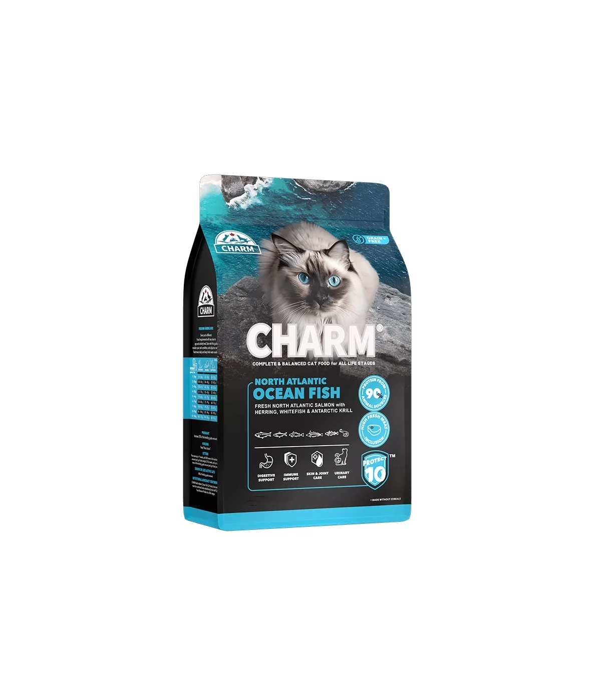 Il cibo per gatti CHARM con Pesce dell’ Oceano Atlantico del Nord è formulato per soddisfare i livelli nutrizionali stabiliti dai profili nutrizionali degli alimenti per gatti AAFCO per tutte le fasi della vita.