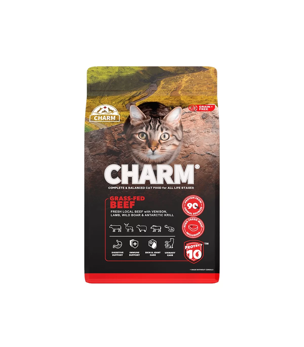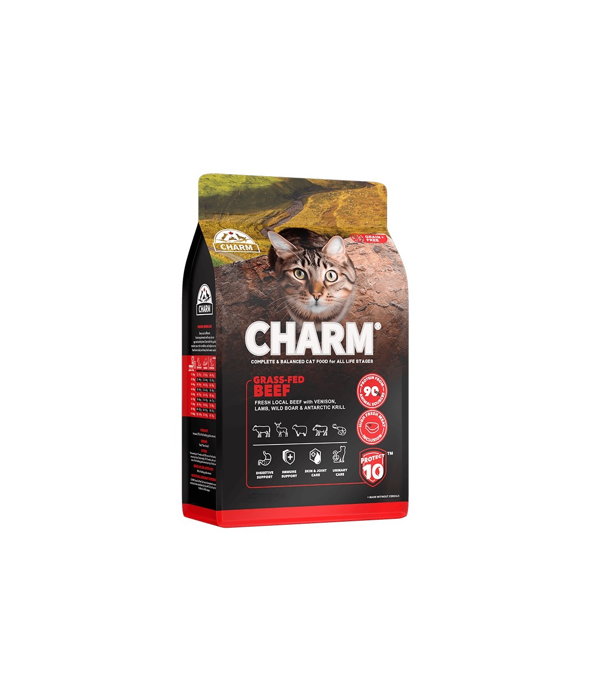 Il cibo per gatti CHARM con Manzo alimentato ad erba è formulato per soddisfare i livelli nutrizionali stabiliti dai profili nutrizionali degli alimenti per gatti AAFCO per tutte le fasi della vita.