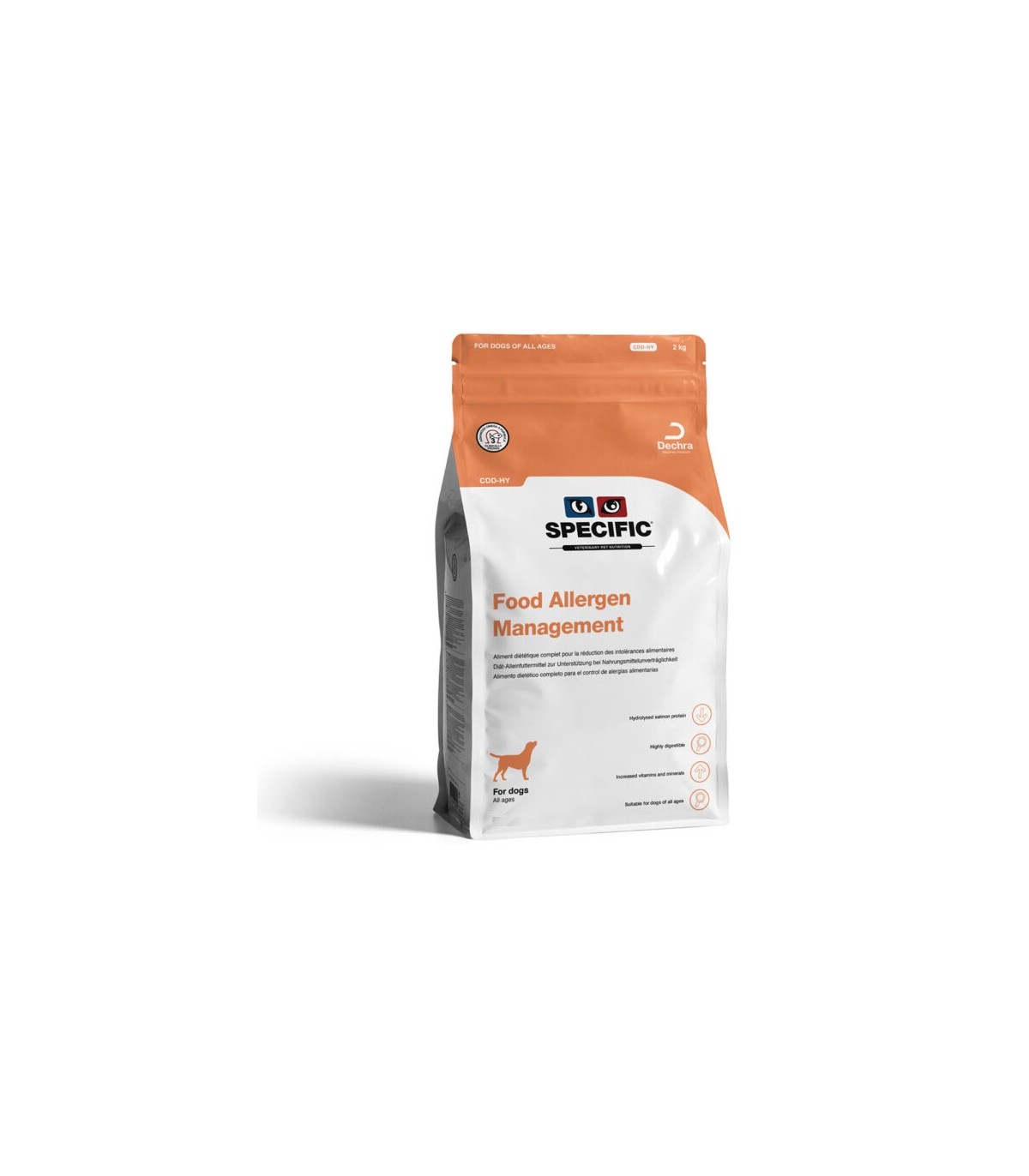- SPECIFIC® CDD-HY Food Allergen Management è una dieta ipoallergenica completa e bilanciata con un numero limitato di ingredienti (a base di riso e salmone idrolizzato) che soddisfa i fabbisogni nutrizionali dei cani di tutte le età con allergia alimentare.