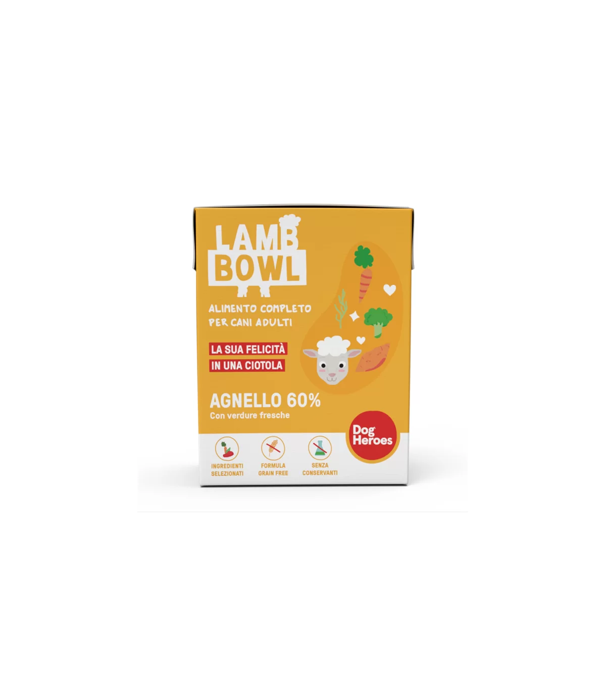 La Lamb Bowl da dispensa è la ricetta per cani gustosa e ricca di proteine a base di carne di agnello. È adatta a cani con allergie alle proteine tradizionali o intolleranze alimentari.