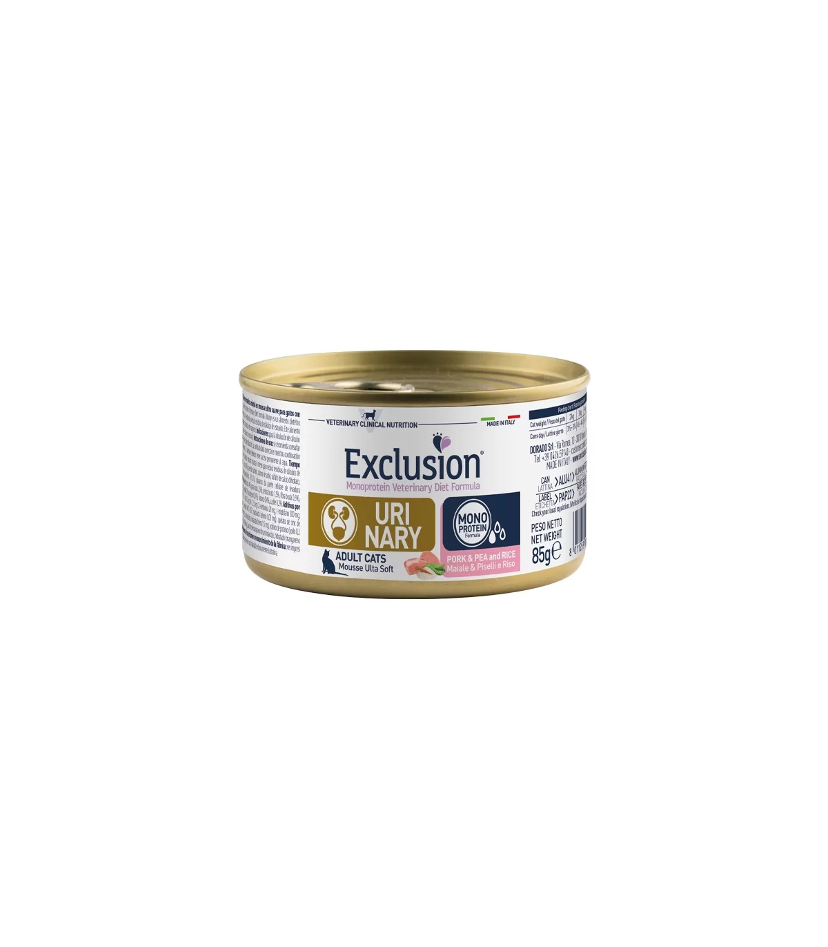 Exclusion Monoprotein Veterinary Diet Formula Urinary è un alimento dietetico con formulazione monoproteica, realizzato con un’unica fonte alternativa di proteine animali, ingredienti innovativi e preservato con tocoferoli naturali; rappresenta la risposta nutrizionale a disposizione del Veterinario, come supporto nutrizionale specifico per la dissoluzione e la riduzione di recidive dei calcoli di struvite nei gatti.