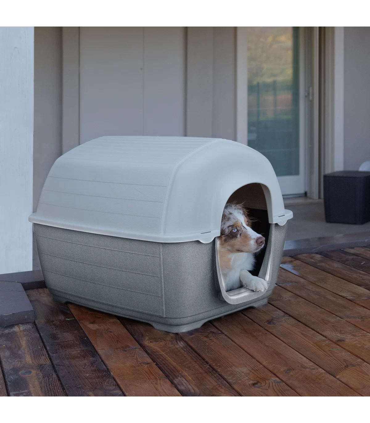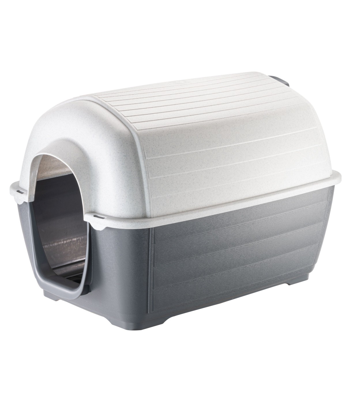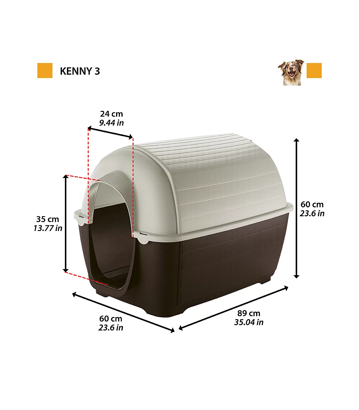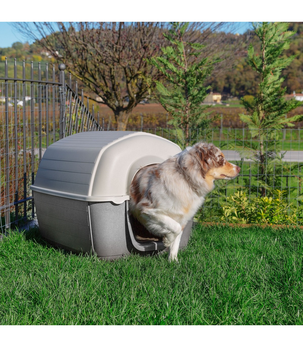 Ricorda nella forma un igloo: Kenny è la cuccia in resina termoplastica per cani, adatta all'esterno, che garantisce un ottimo isolamento sia alle alte che alle basse temperature, è costruita in materiale robusto resistente agli urti e ai raggi UV. La cuccia è dotata dell'utilissimo vent system che assicura la massima ventilazione interna evitando il formarsi di umidità e del sistema drain system che, grazie al fondo con apposite fessure, consente il defluire dell'acqua garantendo così un ambiente sempre asciutto e antisettico. Kenny ha un ampio ingresso per consentire al vostro cane un'entrata agevole e la particolare forma della sua base consente di mantenerla perfettamente isolata da terra.