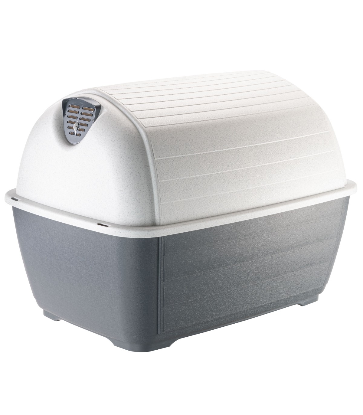 Ricorda nella forma un igloo: Kenny è la cuccia in resina termoplastica per cani, adatta all'esterno, che garantisce un ottimo isolamento sia alle alte che alle basse temperature, è costruita in materiale robusto resistente agli urti e ai raggi UV. La cuccia è dotata dell'utilissimo vent system che assicura la massima ventilazione interna evitando il formarsi di umidità e del sistema drain system che, grazie al fondo con apposite fessure, consente il defluire dell'acqua garantendo così un ambiente sempre asciutto e antisettico. Kenny ha un ampio ingresso per consentire al vostro cane un'entrata agevole e la particolare forma della sua base consente di mantenerla perfettamente isolata da terra.