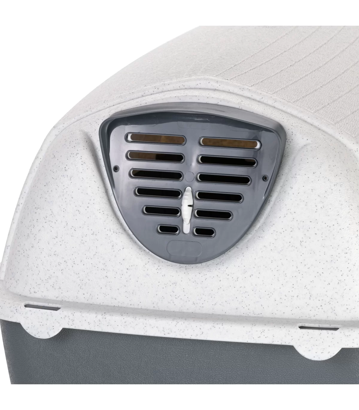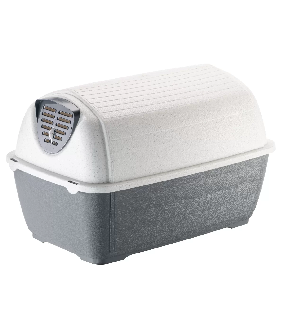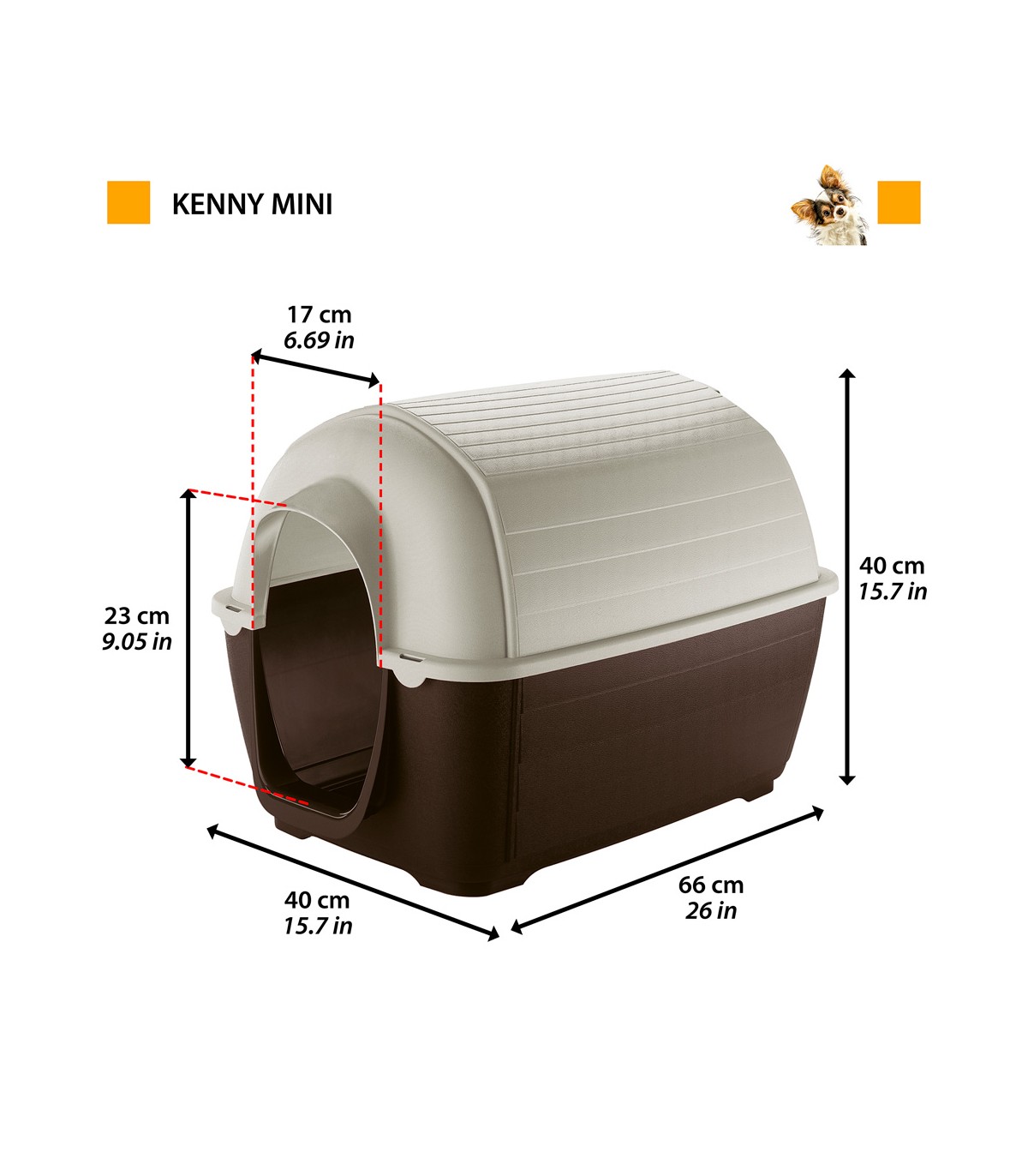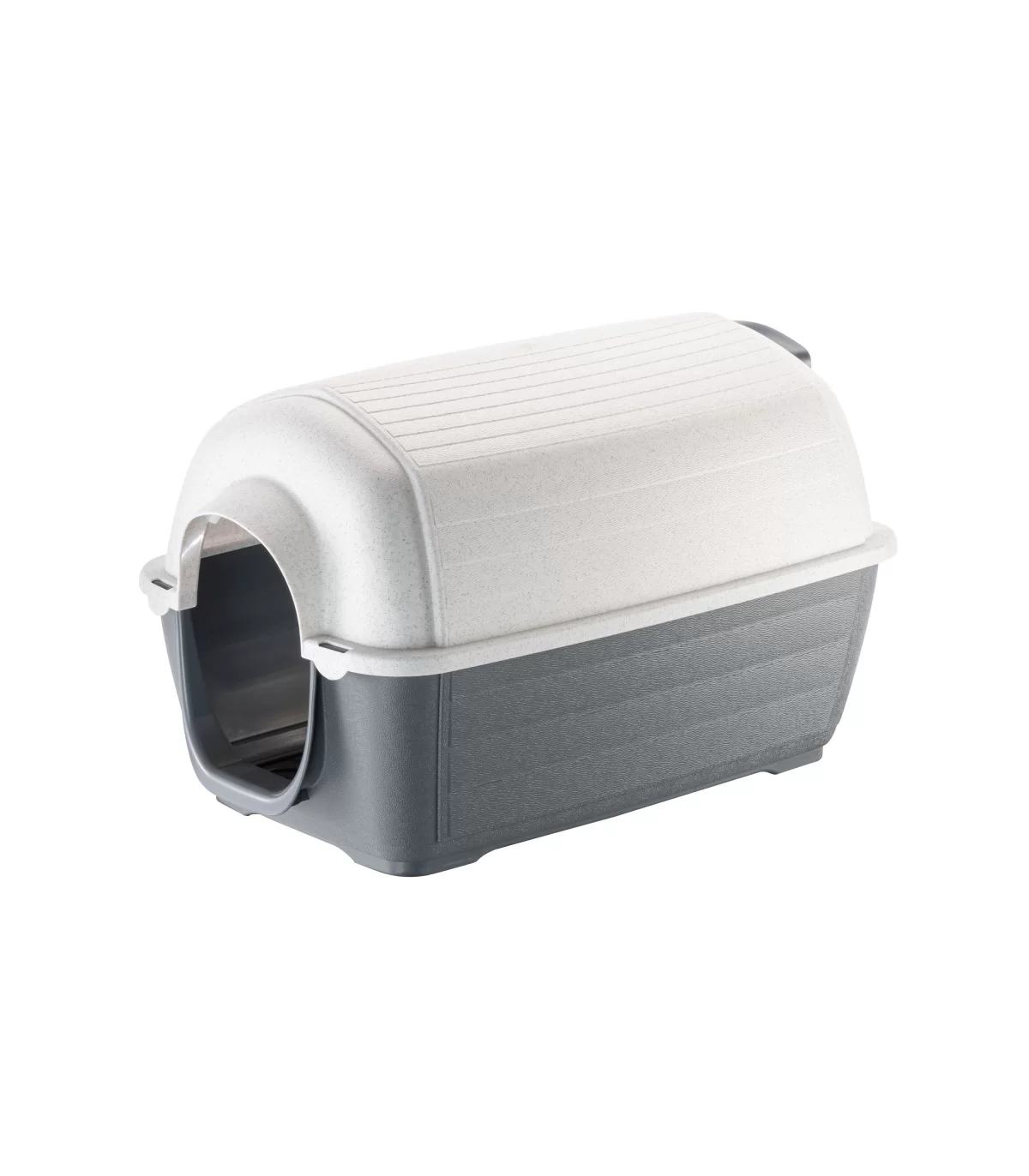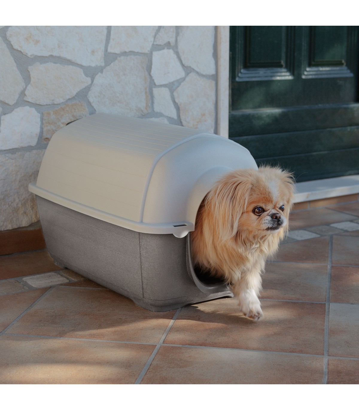 Ricorda nella forma un igloo: Kenny è la cuccia in resina termoplastica per cani, adatta all'esterno, che garantisce un ottimo isolamento sia alle alte che alle basse temperature, è costruita in materiale robusto resistente agli urti e ai raggi UV. La cuccia è dotata dell'utilissimo vent system che assicura la massima ventilazione interna evitando il formarsi di umidità e del sistema drain system che, grazie al fondo con apposite fessure, consente il defluire dell'acqua garantendo così un ambiente sempre asciutto e antisettico. Kenny ha un ampio ingresso per consentire al vostro cane un'entrata agevole e la particolare forma della sua base consente di mantenerla perfettamente isolata da terra.