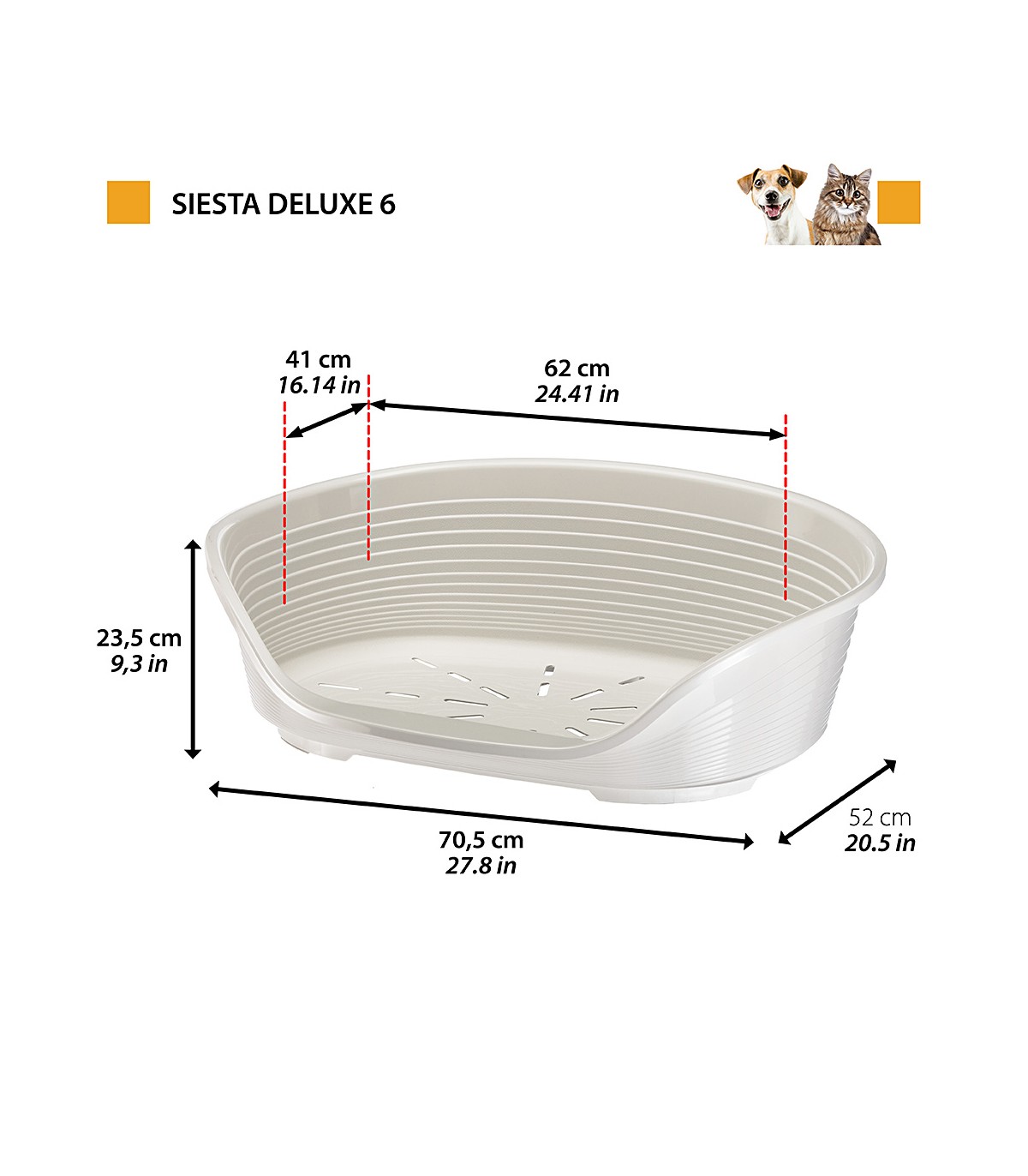 I lettini in plastica Siesta Deluxe sono disponibili in sei formati per cani di tutte le taglie, le misure Siesta Deluxe 2, 4 e 6 sono particolarmente indicate anche per i gatti. Decidete pure con comodo quale tonalità scegliere, ne facciamo di tutti i colori: nero, argento, tortora, bordeaux, rosa oppure marrone.