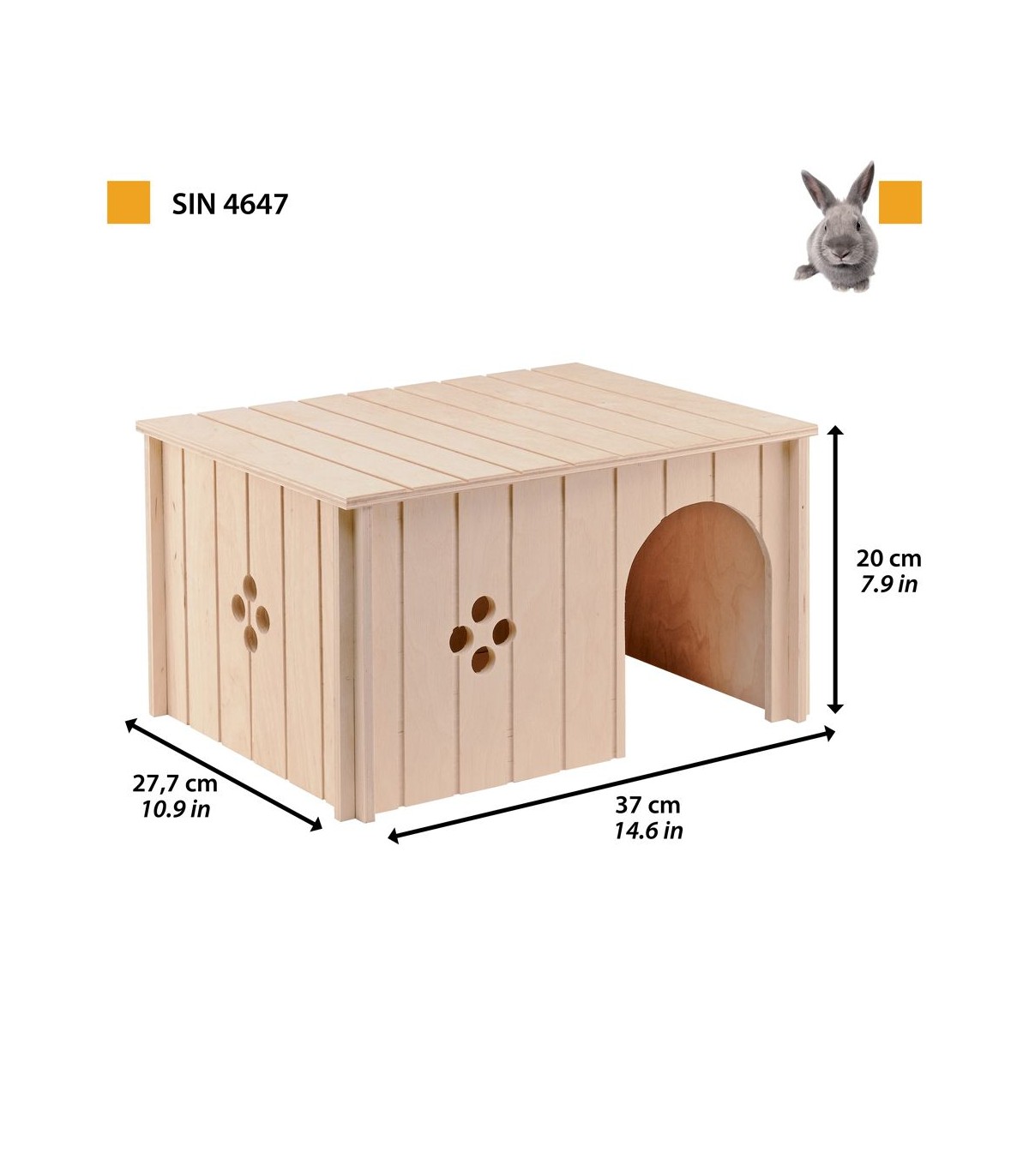 SIN 4646 e la sua versione più grande SIN 4647 sono due casette in legno adatte, per le loro dimensioni, ai conigli. Costruite con una simpatica forma con tetto piano e ingresso frontale, sono abbellite da graziosi fori decorativi che svolgono anche una funzione di aerazione. Nel rispetto dell'ambiente, SIN 4646 e SIN 4647 fanno parte della linea di casette per piccoli animali SIN e sono realizzate impiegando esclusivamente legno, certificato a marchio Tree Friend, che proviene da foreste gestite in modo responsabile e seguendo principi di eco-sostenibilità.