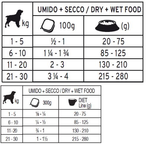 Alimento monoproteico complementare per cani adulti.