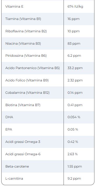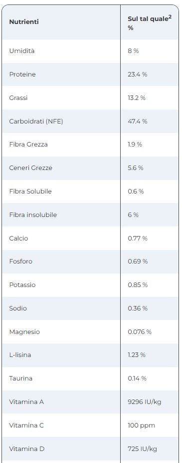 ¹I valori analitici mostrati potrebbero variare leggermente dai valori mostrati sulla confezione. Entrambi i valori sono conformi alle caratteristiche del prodotto.
