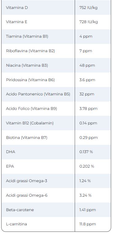 ¹I valori analitici mostrati potrebbero variare leggermente dai valori mostrati sulla confezione. Entrambi i valori sono conformi alle caratteristiche del prodotto.