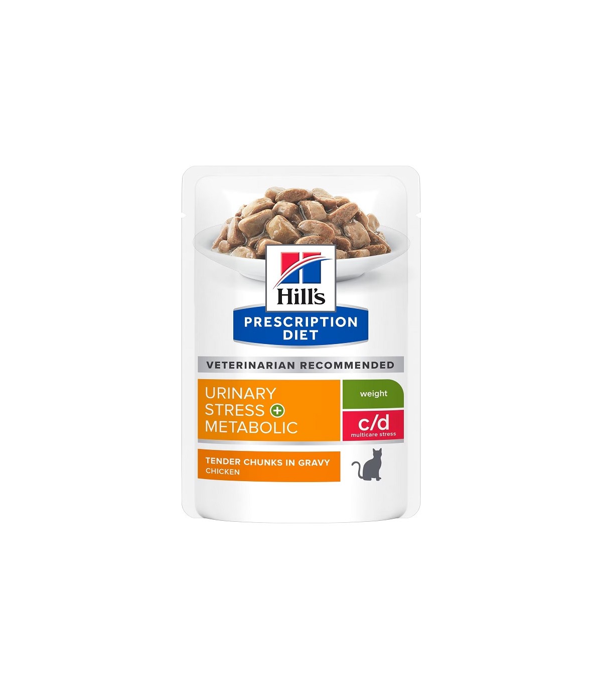 Hill's PRESCRIPTION DIET c/d Multicare Stress + Metabolic alimento per gatti con pollo è un alimento dietetico completo per la dissoluzione dei calcoli di struvite, la riduzione delle recidive dei calcoli di struvite (causa di patologie delle basse vie urinarie del gatto FLUTD), per la riduzione della formazione dei calcoli di ossalato e per la riduzione del peso corporeo in eccesso nei gatti adulti. Questo alimento ha una bassa densità energetica, proprietà di sottosaturazione urinaria per la struvite, proprietà alcalinizzanti le urine e contiene bassi livelli di magnesio, calcio e vitamina D.
