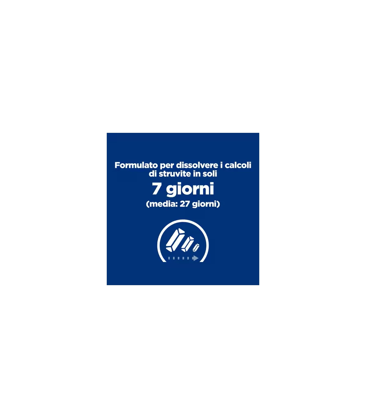 - Formulato per dissolvere i calcoli di struvite in appena 7 giorni (in media 27 giorni)