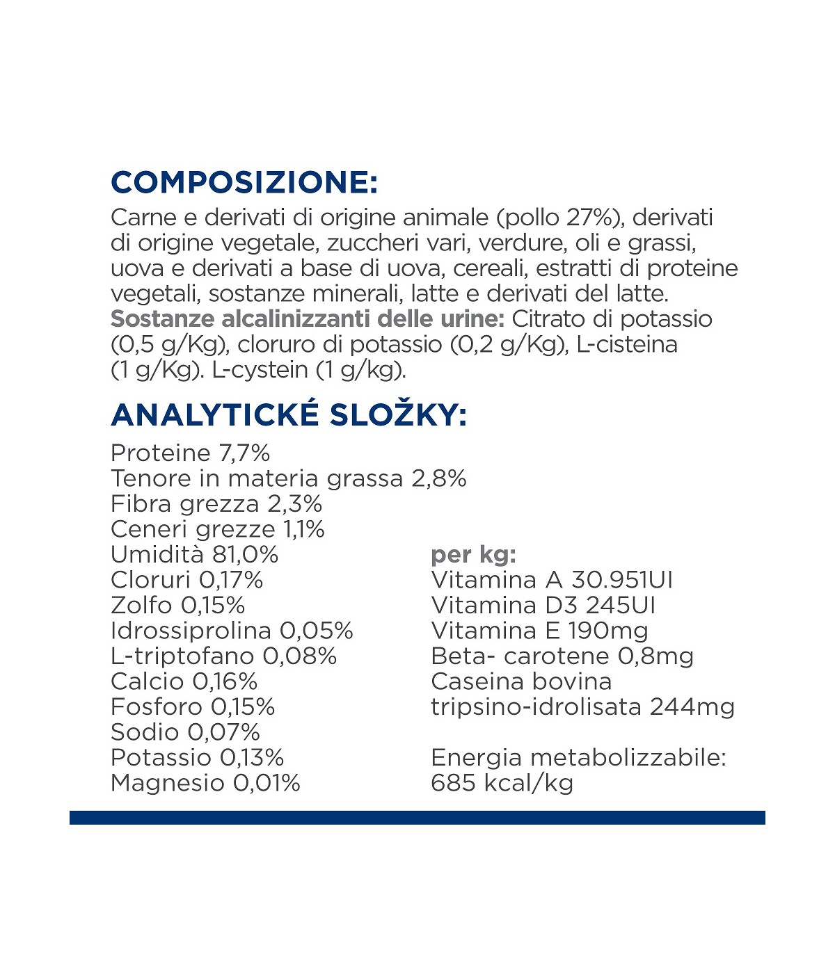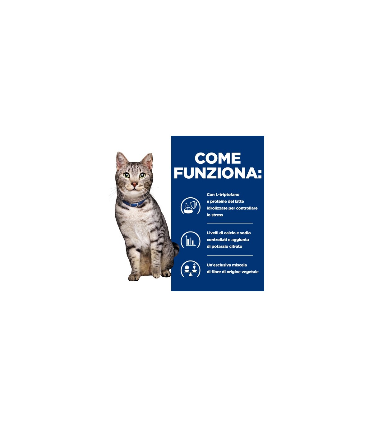I nutrizionisti e veterinari Hill's hanno sviluppato Prescription Diet c/d Multicare Stress + Metabolic alimento per gatti per essere una nutrizione clinica appositamente formulata per aiutare a gestire la salute urinaria e il peso di un gatto. Infatti, è stato dimostrato che la nutrizione in c/d Multicare Stress + Metabolic alimento per gatti riduce dell'89% il tasso di recidiva dei più comuni segni urinari, riduce il peso corporeo dell'11% in 60 giorni e contiene ingredienti per aiutare a gestire la fatica.