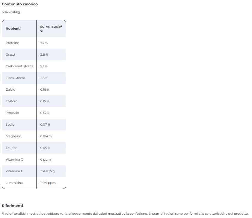 Somministrare solo questo alimento. Si raccomanda di chiedere il parere di un veterinario prima dell’uso. Per una perdita di peso efficace o per mantenere il peso ideale, non si dovrebbe superare l'apporto energetico giornaliero raccomandato. Si consiglia un periodo di transizione quando si inizia la somministrazione della dieta.
