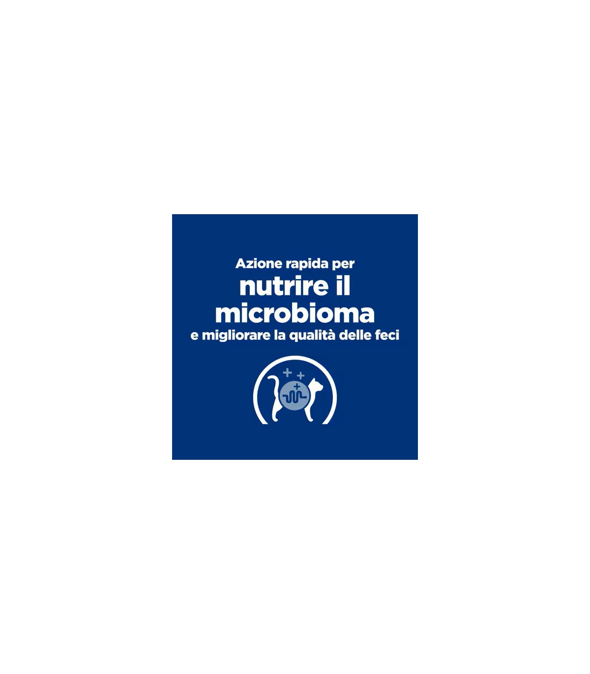 La salute digestiva del vostro gatto può essere negativamente colpita da molti problemi, e quando il vostro gatto subisce un attacco digestivo, si tratta di una esperienza decisamente spiacevole per tutti coloro che ne sono coinvolti. La buona notizia è che voi potete aiutare il vostro gatto a sentirsi meglio con un alimento che rivoluziona la modalità con cui approcciare le patologie GI fibro-rispondenti, ponendo la salute del microbioma – l'ecosistema intestinale unico del vostro gatto - al primo posto della cura GI. I nutrizionisti ed i veterinari Hill’s hanno formulato la nutrizione di Prescription Diet Gastrointestinal Biome con ActivBiome+, una esclusiva tecnologia degli ingredienti, che dimostrato clinicamente di promuovere feci sane e regolari in sole 24 ore e di aiutare a ridurre il rischio di recidiva.