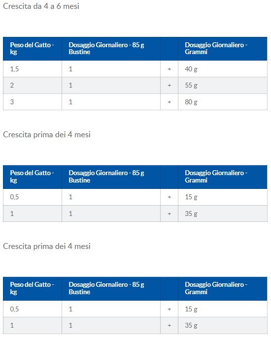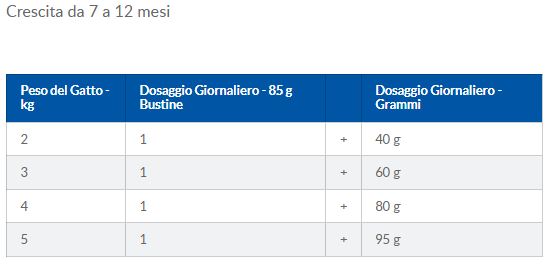 Somministrare la quantità giornaliera indicata; regolare la quantità per mantenere il peso ottimale.