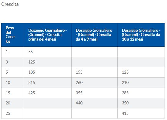 Somministrare la quantità giornaliera indicata; regolare la quantità per mantenere il peso ottimale.