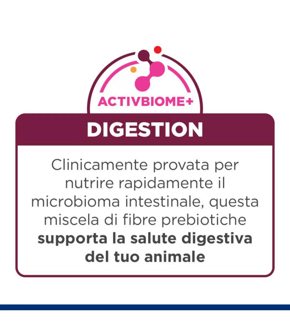 Hill’s Prescription Diet i/d alimento secco per cuccioli con pollo è un alimento altamente digeribile, formulato per nutrire il microbioma intestinale e aiutare a ridurre i disturbi digestivi. Arricchito con ActivBiome+ Digestion, una miscela proprietaria di prebiotici che si è dimostrata in grado di nutrire rapidamente il microbioma intestinale dell'animale per la massima salute e benessere dell'apparato digerente.