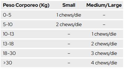 L’uso di Calmalia® è semplice e pratico. Somministra le soft chews direttamente in bocca al tuo fedele compagno di vita, come premio quotidiano di serenità, secondo le quantità indicate in tabella.