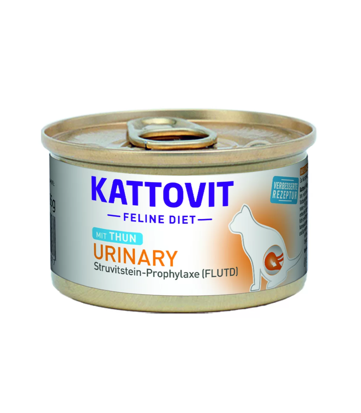 Kattovit Feline Diet - URINARY è stato sviluppato secondo le più recenti scoperte scientifiche. Per prevenire la formazione di calcoli urinari (malattia delle basse vie urinarie nei felini, FLUTD), la composizione del cibo è stata sviluppata in modo che il valore del pH dell'urina del gatto sia significativamente basso, pari a 6,5. Kattovit URINARY contiene sostanze acidificanti dell'urina (DL-metionina e solfato di calcio) e ha un basso contenuto di magnesio. Ai fini della prevenzione, sono importanti un'elevata digeribilità e un'elevata densità energetica.