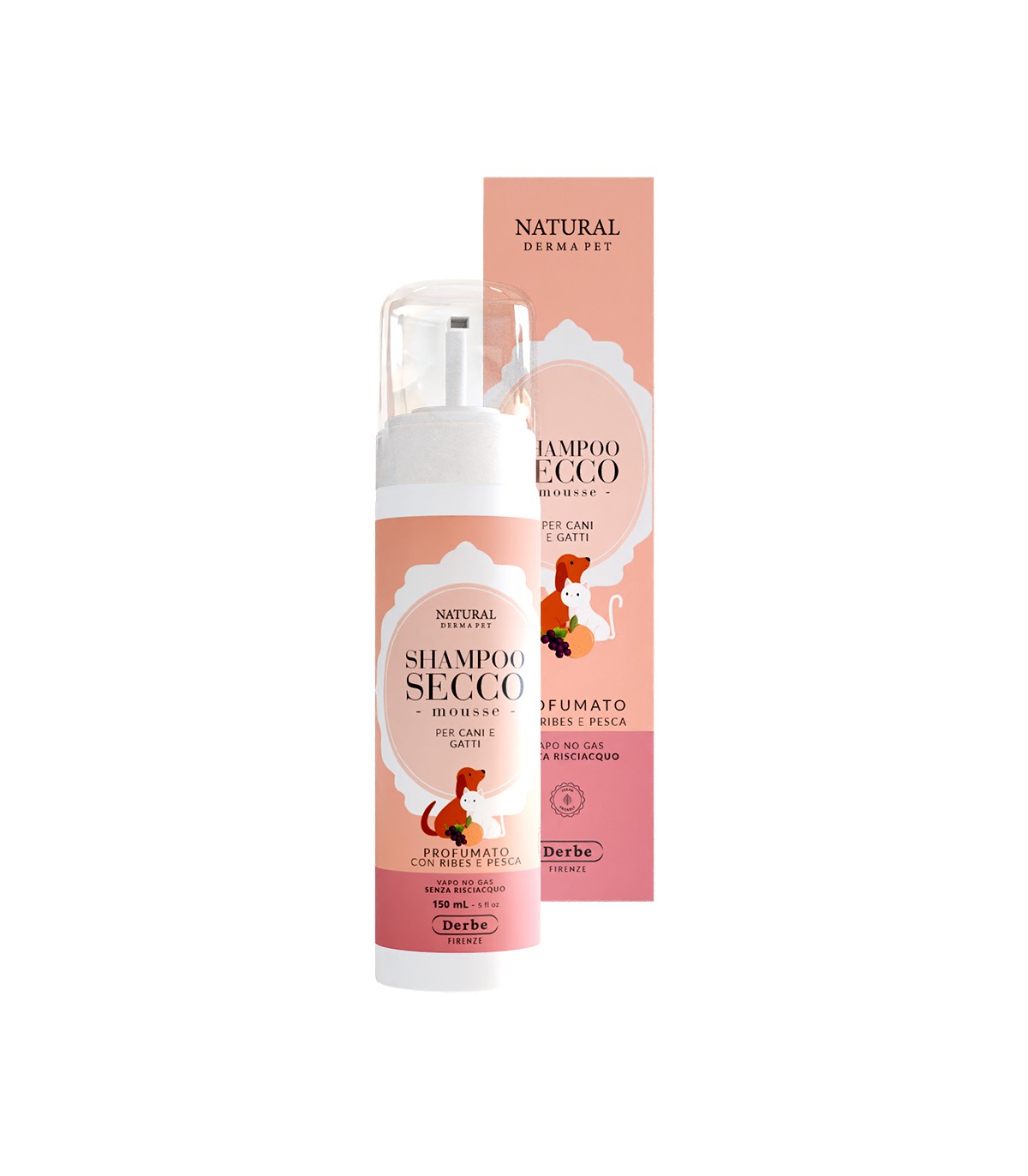 Shampoo Mousse a Secco al Ribes e Pesca: freschezza e dolcezza per il pelo dei nostri animali, senza risciacquo! La sua formula delicata e leggera rimuove lo sporco, neutralizza gli odori e lascia il pelo morbido, lucente e profumato. Ideale per ogni occasione, rispetta la pelle sensibile.