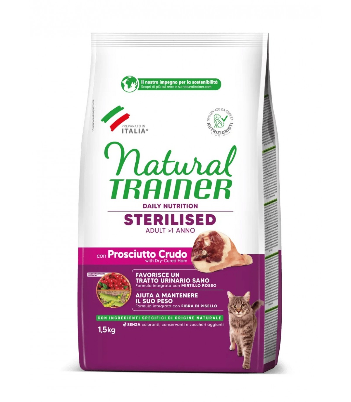 Natural Trainer daily nutrition gatto sterilised adult prosciutto crudo 1,5 kg