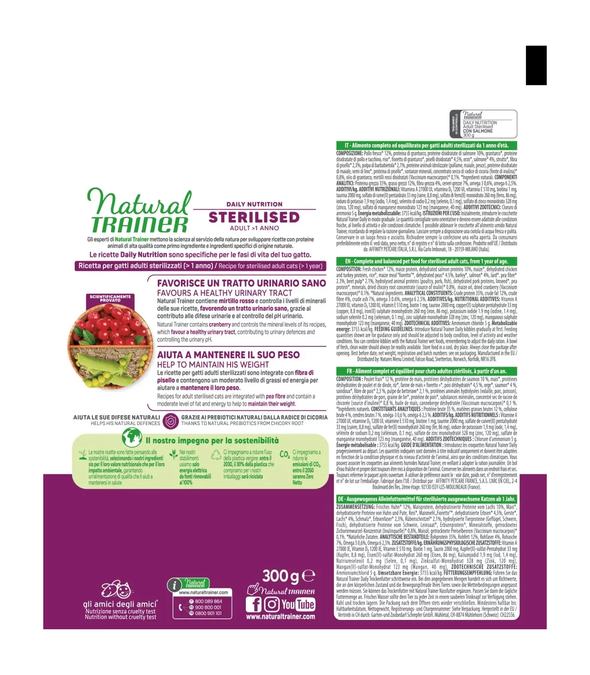 Alimento completo ed equilibrato per gatti adulti sterilizzati da 1 anno d’età.