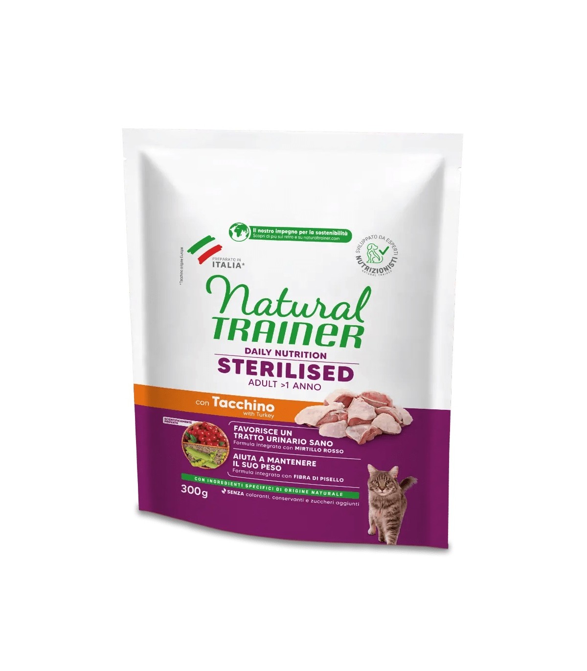 Natural Trainer daily nutrition gatto sterilised adult tacchino 300 gr