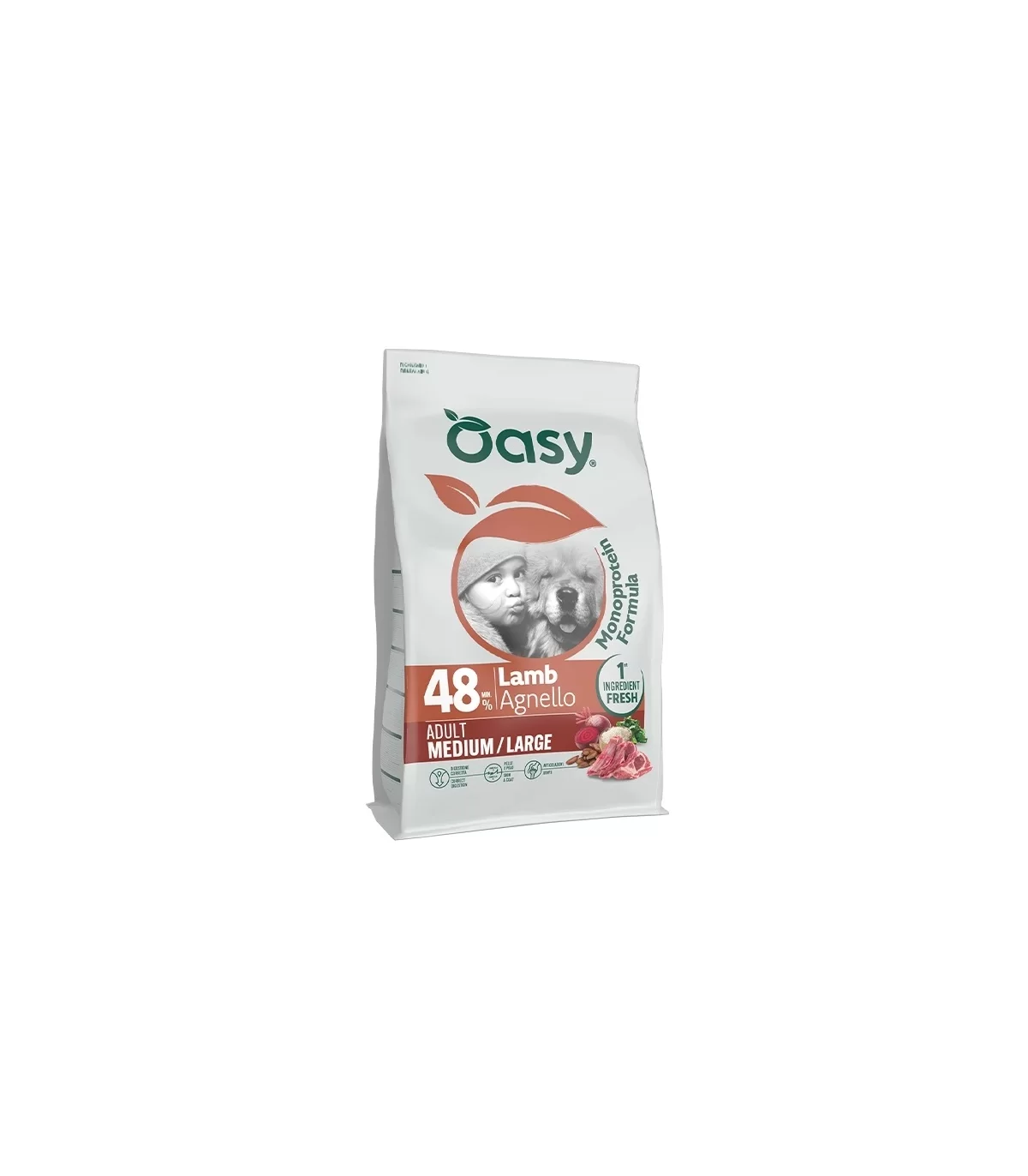 Agnello come unica fonte proteica, polpa di barbabietola essiccata e prodotti del lievito (fonte di MOS) per favorire una corretta digestione e una regolare attività intestinale.