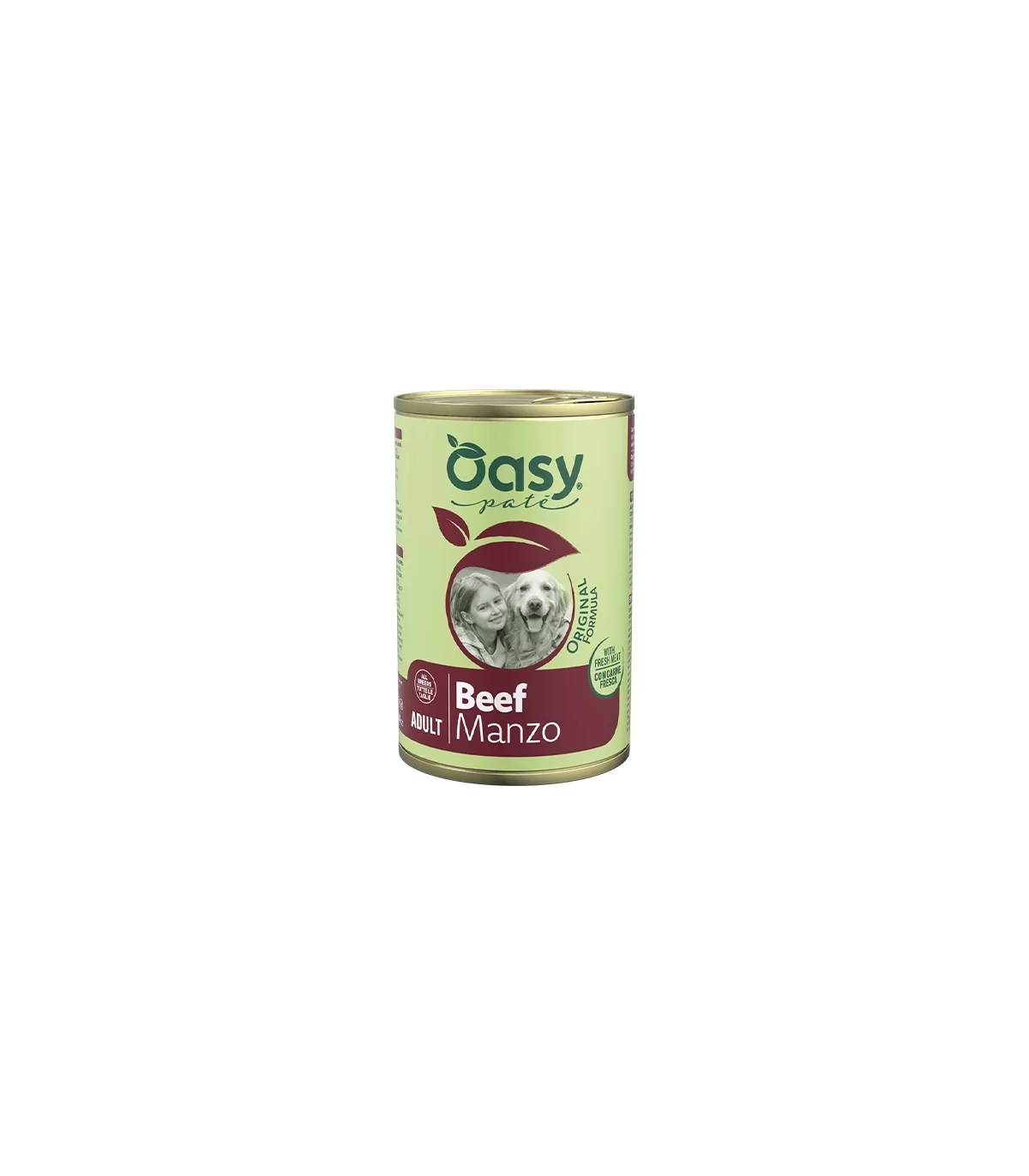 Mantieni il tuo cane adulto attivo e in salute con gli alimenti umidi Oasy. Il morbido paté gusto manzo include proteine animali di alta qualità ed è adatto a cani di tutte le taglie. La carne fresca garantisce digeribilità, assimilazione dei nutrienti e gusto.