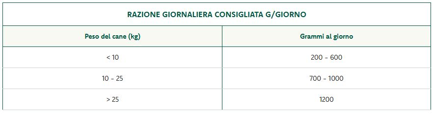 Oasy è pronto per l’uso e va servito a temperatura ambiente. La razione giornaliera indicata può variare in base al livello di attività fisica dell'animale. Si consiglia di suddividere la razione in due pasti giornalieri. Lascia sempre a disposizione del tuo cane acqua fresca e pulita.