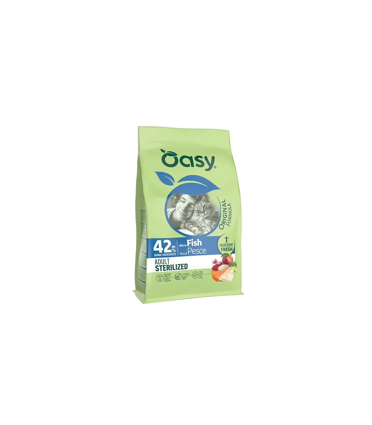 Grazie all'alimento Original Formula Adult Sterilized Pesce, con minimo il 42% di ingredienti animali e benefici specifici per favorire la salute delle vie urinarie e il controllo del peso, gli assicuri benessere e vitalità, ogni giorno.