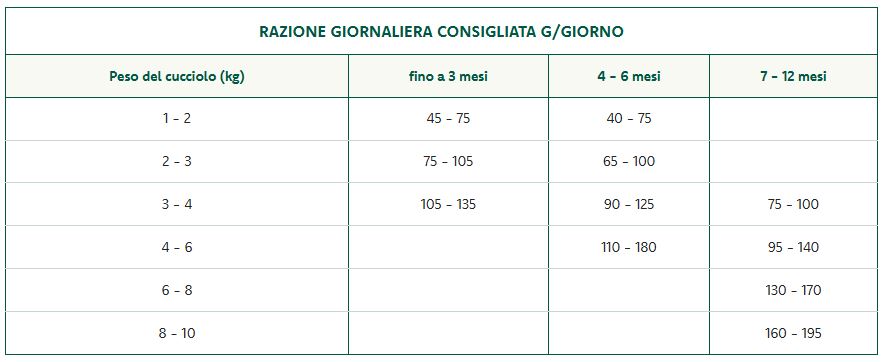 Proteine di origine animale altamente digeribili e un corretto apporto di grassi, per fornire la giusta energia al cucciolo in crescita.