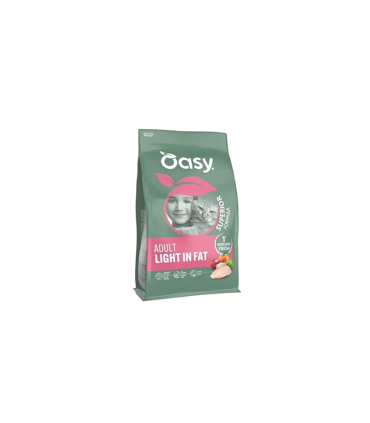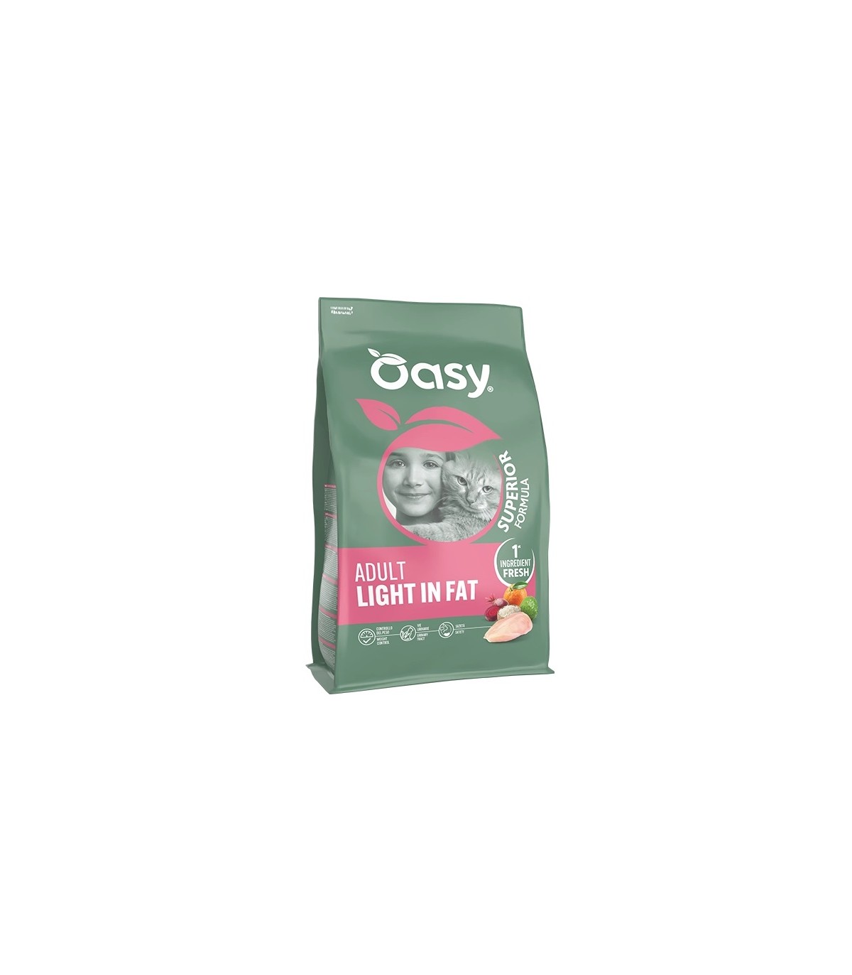 Minor contenuto di grassi* e L-Carnitina per favorire il controllo del peso e mantenere il tuo gatto sedentario in una forma fisica ottimale. *Rispetto a Oasy Superior Adult Pollo