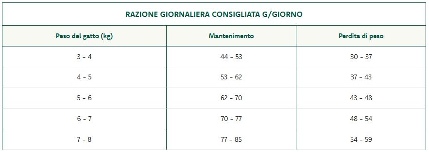 Alimento completo per gatti adulti in sovrappeso o che svolgono attività fisica ridotta.