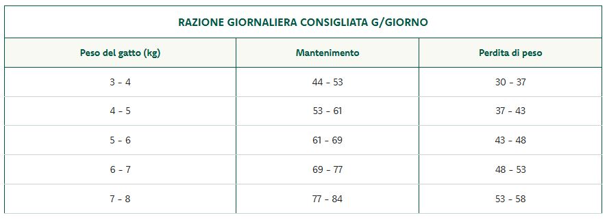 Il passaggio da un altro alimento ad Oasy deve essere effettuato gradualmente in 7 giorni. La razione giornaliera indicata può variare in base al livello di attività fisica dell'animale.