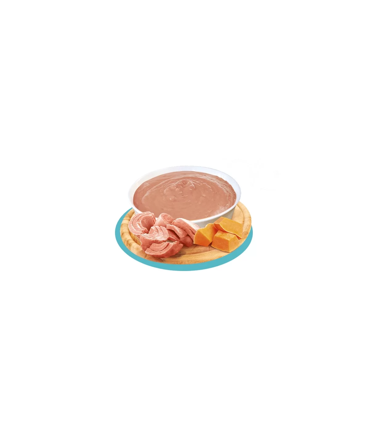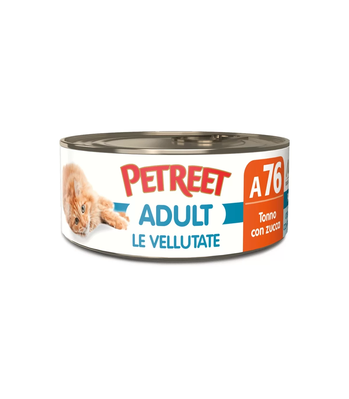 Gustosa crema al tonno Pinne Gialle con zucca, ideale anche per gatti con problemi di masticazione.