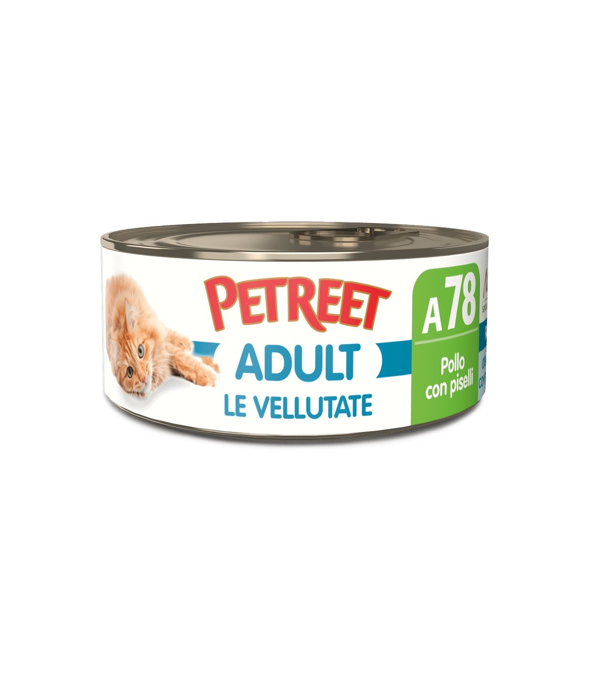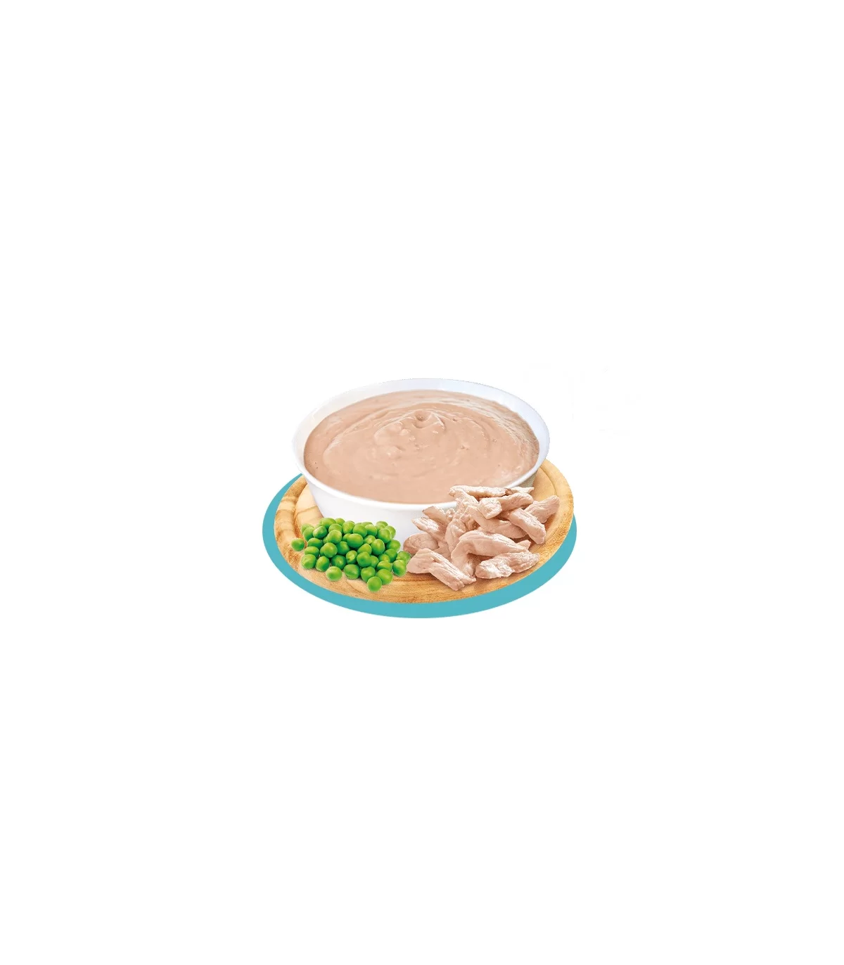 Gustosa crema realizzata con pregiato petto di pollo e piselli, ideale anche per gatti con problemi di masticazione.