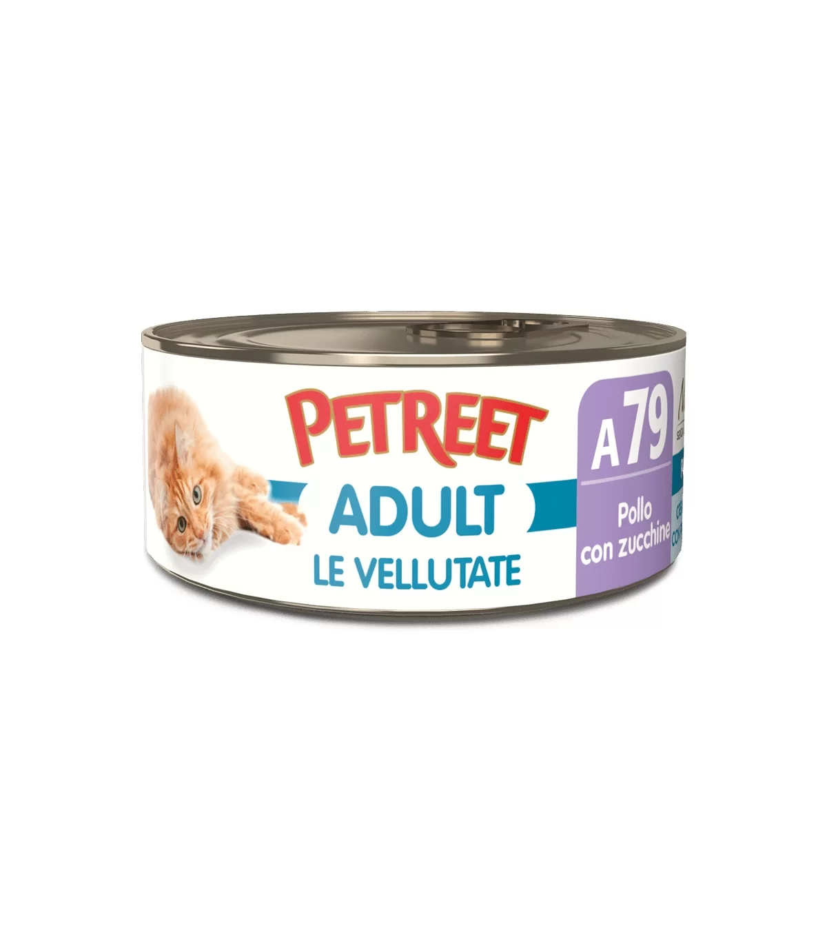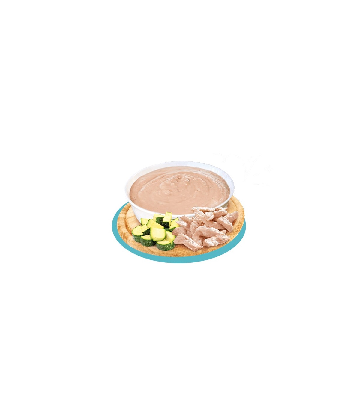 Gustosa crema realizzata con pregiato petto di pollo e zucchine, ideale anche per gatti con problemi di masticazione.