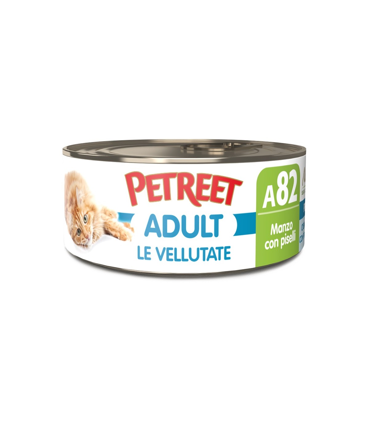 Gustosa crema realizzata con pregiata carne di manzo e piselli, ideale anche per gatti con problemi di masticazione.