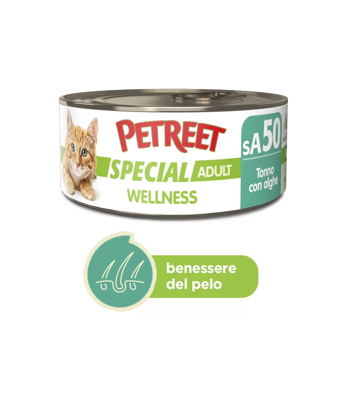 Alimento funzionale a base di tonno con alghe, arricchito con olio di alghe, per favorire la bellezza e la salute di cute e pelo. Alimento completo per gatti. Arricchito con olio di alghe, fonte naturale di Omega 3.