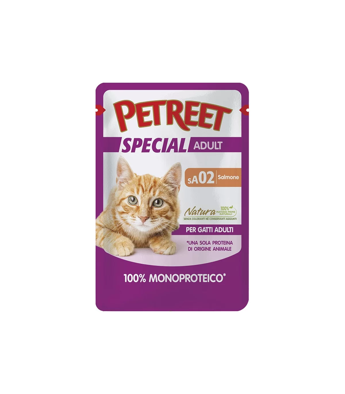 INFORMAZIONI: Petreet 100% monoproteico contiene proteine di origine animale al 100% da una sola materia prima, senza coloranti né conservanti aggiunti. Tutte le varianti sono cotte in una gustosa salsa naturale per esaltare il sapore delle materie prime utilizzate.