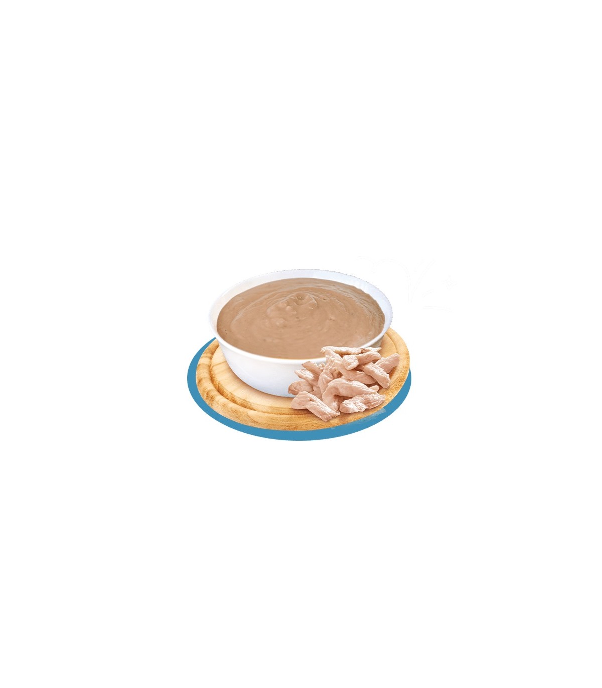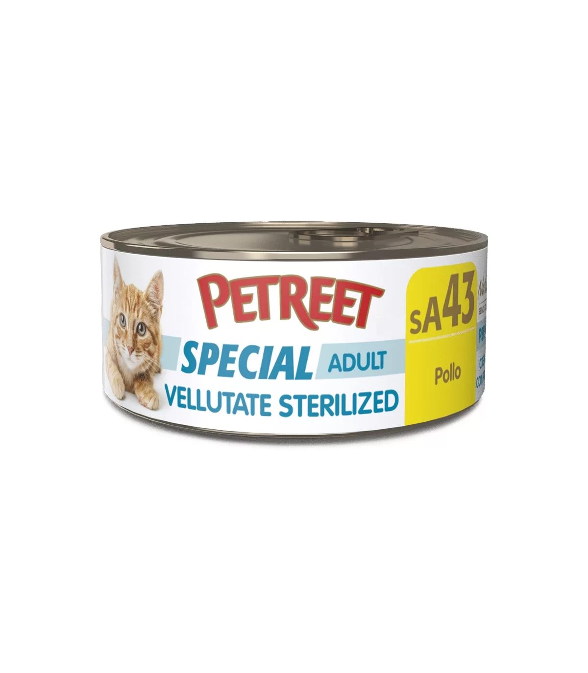 Alimento completo in crema con pregiato pollo, ideale per gatti sterilizzati.