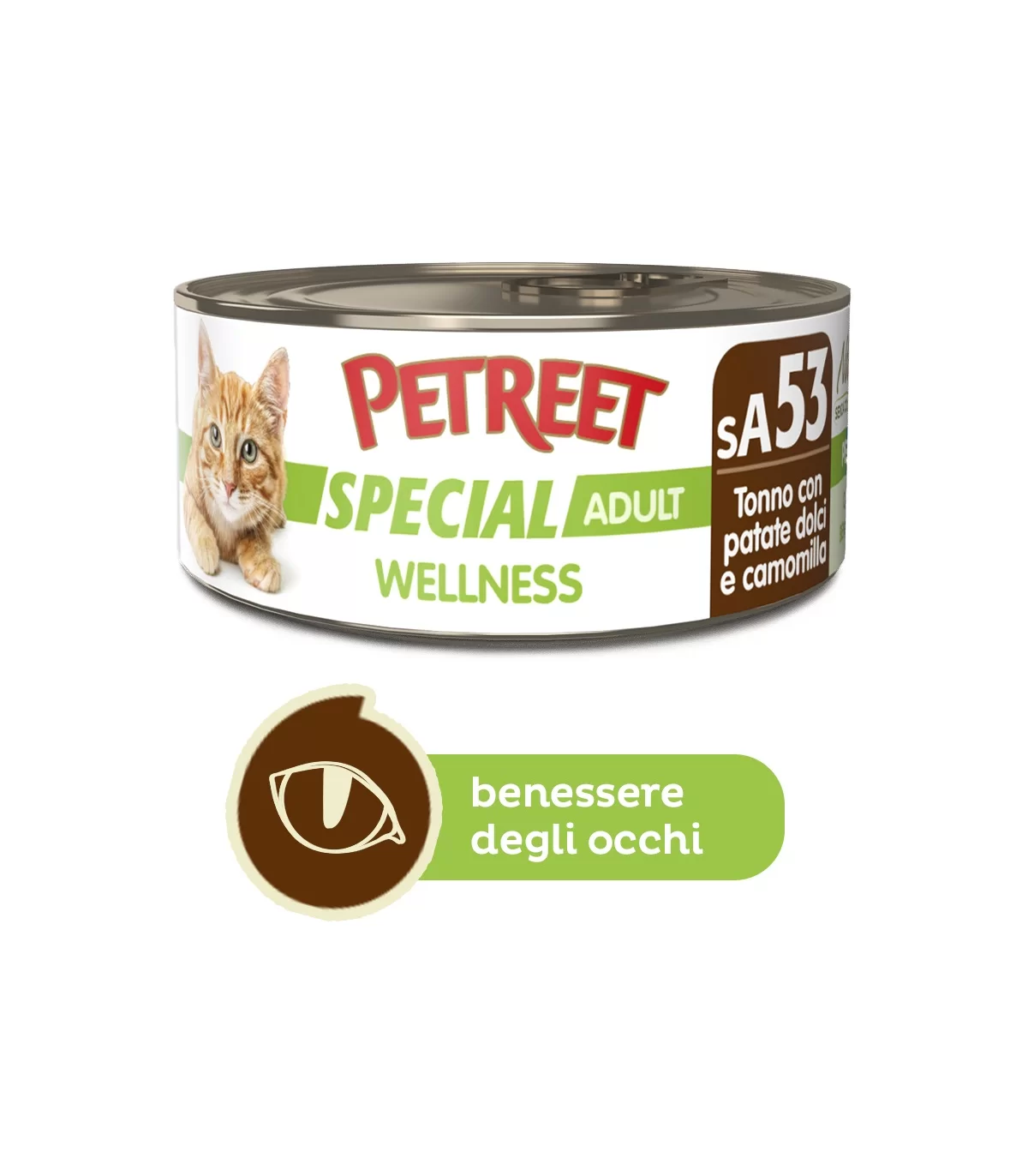 Alimento funzionale a base di tonno con patate dolci e camomilla, arricchito con taurina, per favorire il corretto funzionamento della retina, fondamentale per una buona vista.