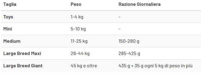 Proteina 26%, Tenore in materia grassa 16%, Fibre grezze 3,2%, Materia inorganica 7,8%, Omega 3 0,19%, Omega 6 1,9%, Calcio 1,4%, Fosforo 0,95%, Sodio 0,54%, Potassio 0,55%, Magnesio 0,09%.